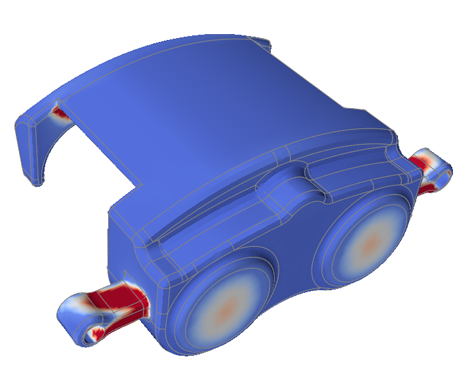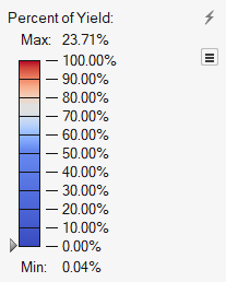 A percent of yield of 100% means your part may fail. By default, areas that are approaching a percent of yield of 100% are shown in red and indicate where the part is most likely to fail.