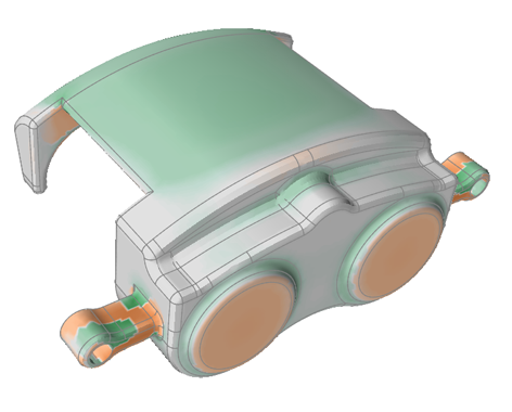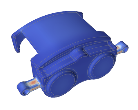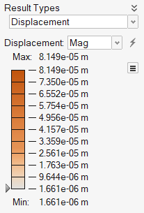 The displacement result type shows how much your model displaces or deflects when loads and supports are applied. The areas of the model that are the darkest orange have the most displacement.