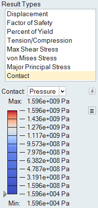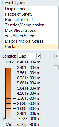 The contact result type allows you to view contact gap, status, and pressure to ensure that the contact is behaving appropriately. It also extracts contact force results for normal, tangential, and traction forces.
