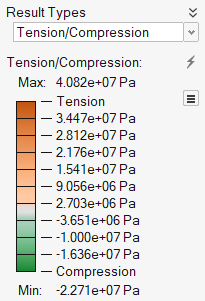 The tension and compression result type shows which areas of the model are in tension and which are in compression. These results are derived from the signed von Mises stress results.