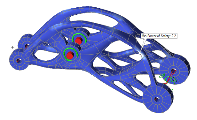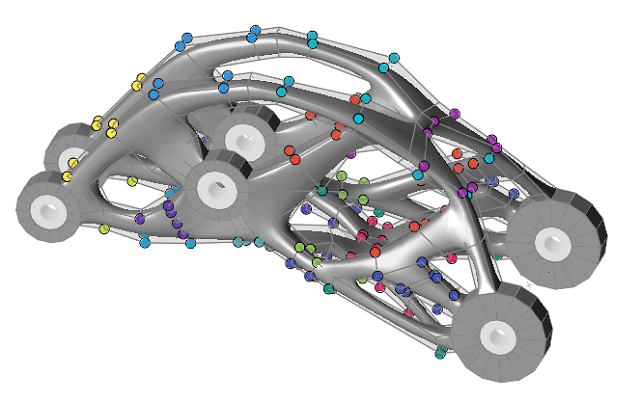 Shape variables are required to run PolyNURBS shape optimization, and can be defined using the Shape Variables tool on the PolyNURBS ribbon. Shape variables define the movement of cage points, and shape optimization modifies these locations to update the shape.