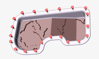 Typically, beads are very regular and are often simply aligned to major geometry features. Although they are well understood by manufacturers and do increase the stiffness of structures, topography optimization will usually result in a bead pattern that outperforms standard bead layouts.