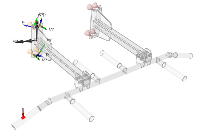 Use the Reaction Forces tool to visualize the resultant forces and moments between parts, or at supports or grounded fasteners.