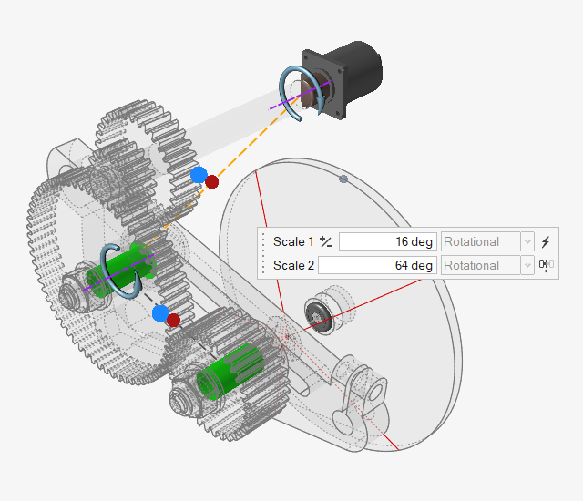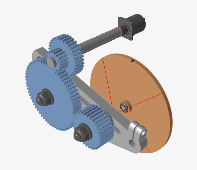 Note: When the motion analysis is initially run for this model, the motor is driving the Tumbler Gear assembly. Any rotation seen in the other gears is due to the influence of gravity acting on the body center-of-gravity. In the next step we will add joint couplers and see what happens. -
