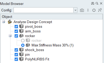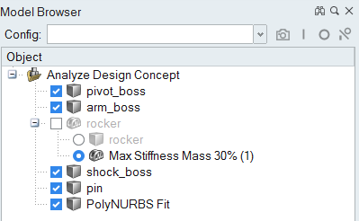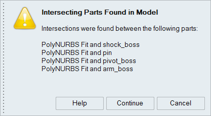three boss parts. Notice that the PolyNURBS part has gaps near these non-design