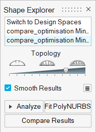 - Comparing optimization runs generated from variations in shape controls and minimum thickness. The resulting mass estimates and parameters used in each run are summarized, allowing you to assess performance against cost and complexity.