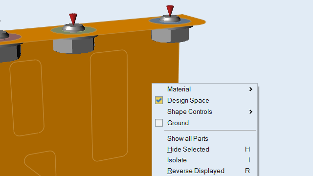 Evenly distributing or limiting the maximum force in all bolts, screws, and other connections in a structure is a common aim of good design practice. When structures become complex in shape or loading, it can be difficult to achieve this objective. One approach is to use topology optimization to redistribute material away from direct load paths so that underutilized fasteners carry more of the applied load. Inspire provides the ability to constrain the load in a grounded screw or grounded bolt to achieve improved load distribution in a structure.