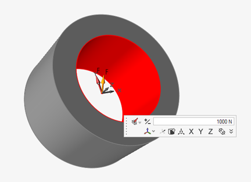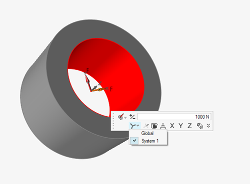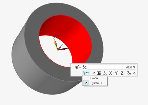 be aligned with local X and have a value of 1000 N and Force 2 will be