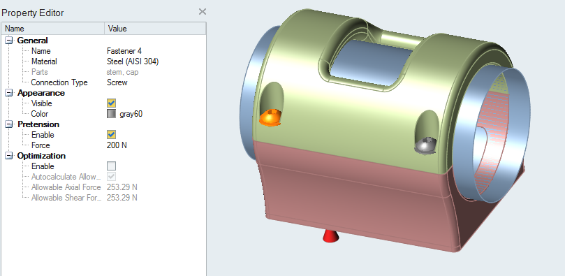 - Select the checkbox to allow entry of a pretension force for fasteners.