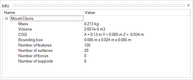 Show model info in a table. For example, the number of forces, supports, assemblies, parts, loads, etc.