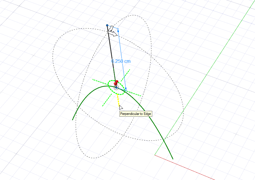 Perpendicular to Edge To place the second point perpendicular to the source curve, click a Perpendicular to Edge handle.