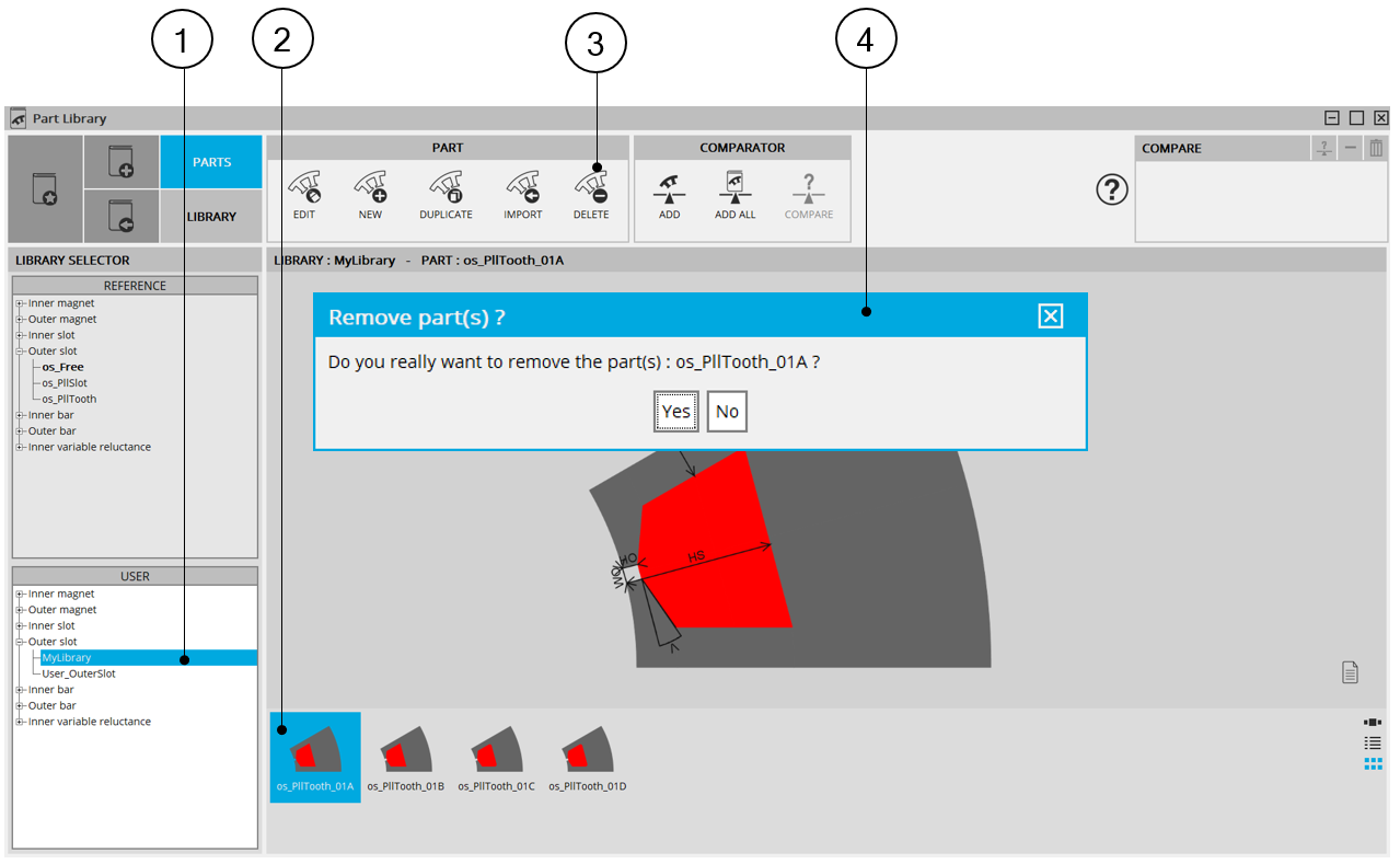 | 1 | Select the library where the parts to be deleted are stored. |