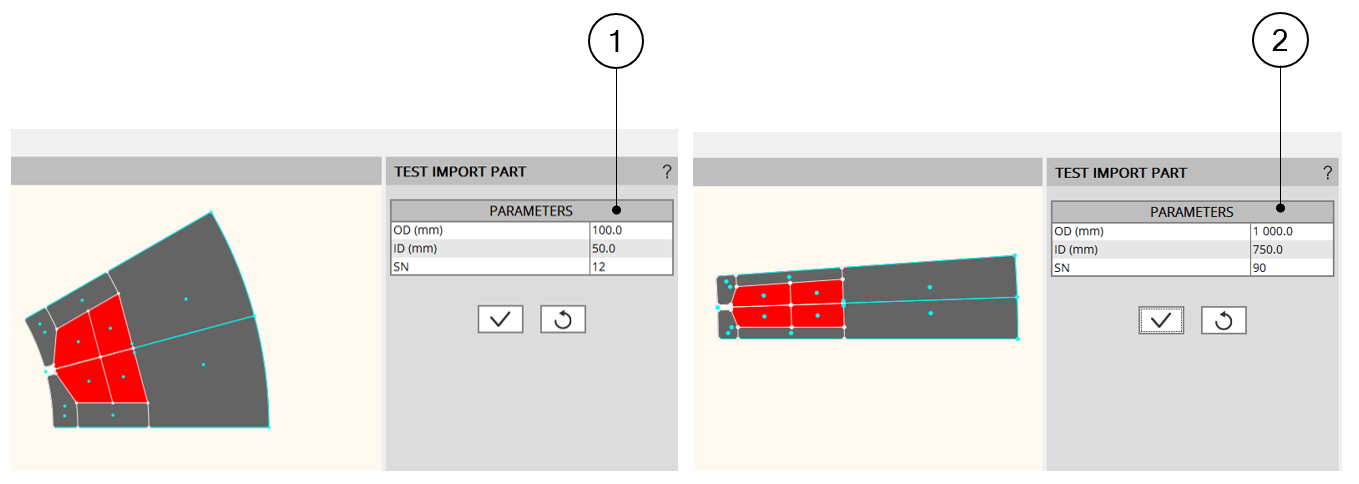 | Automatic adaptation of the part with the sector structural dataBy using “Scale factors” and “Adjustment formulas” |