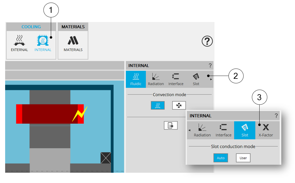 Note: This new way of selection has been implemented in the design environment of Motor Factory for external and internal cooling as illustrated bellow.