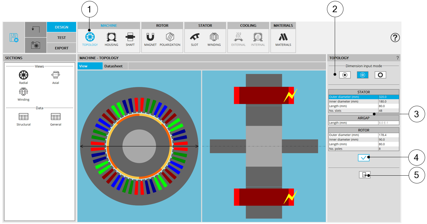 The first step of the design consists of defining structural data of the machine.