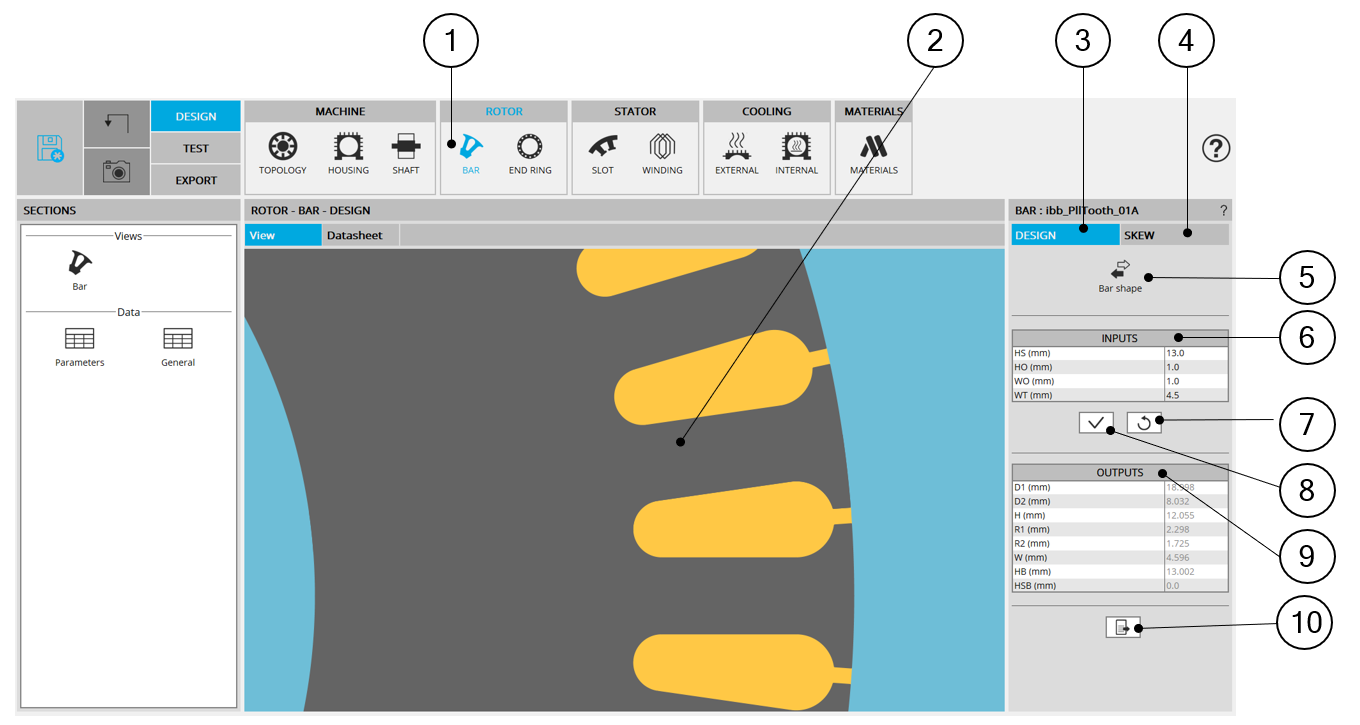 2 Visualization of the motor radial view with bar topology and dimensions.