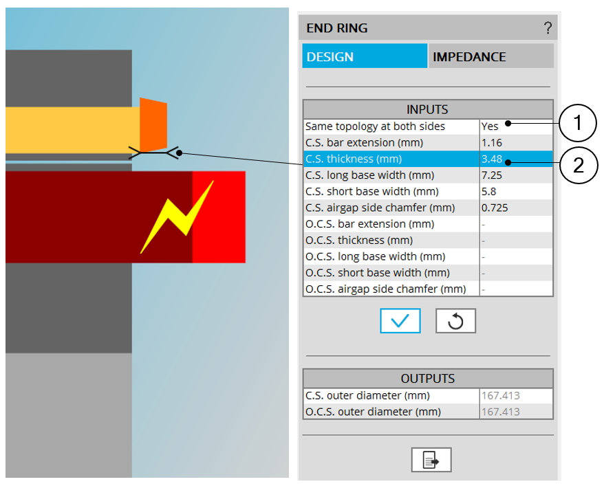 | 2 | Definition of each end ring geometrical input, with the corresponding arrow on the axial view of the machine |