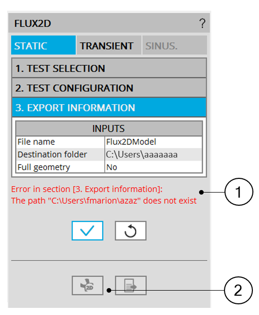 | Motor Factory – EXPORT AREA – Export model for Flux® 2D – Error message | |