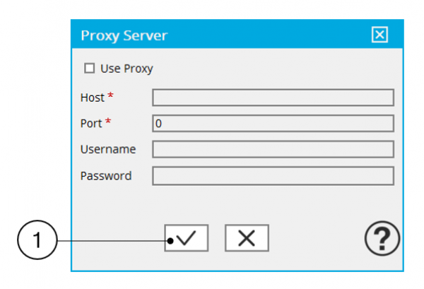 - Click on the apply button (Mark 1 - Figure 5 – Proxy Server Settings - Dialog box). The status will change to Activated when the license is validated, or you will receive an error message if unsuccessful.