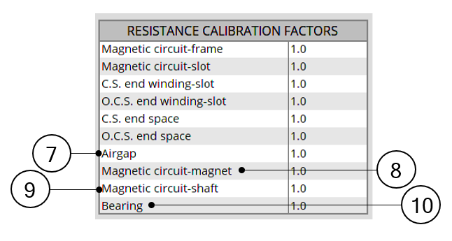 For every existing magnet, this calibration factor tunes the total resistance existing between this magnet and every component of the rotor magnetic circuit around it. Each of these resistances are composed of three resistances: