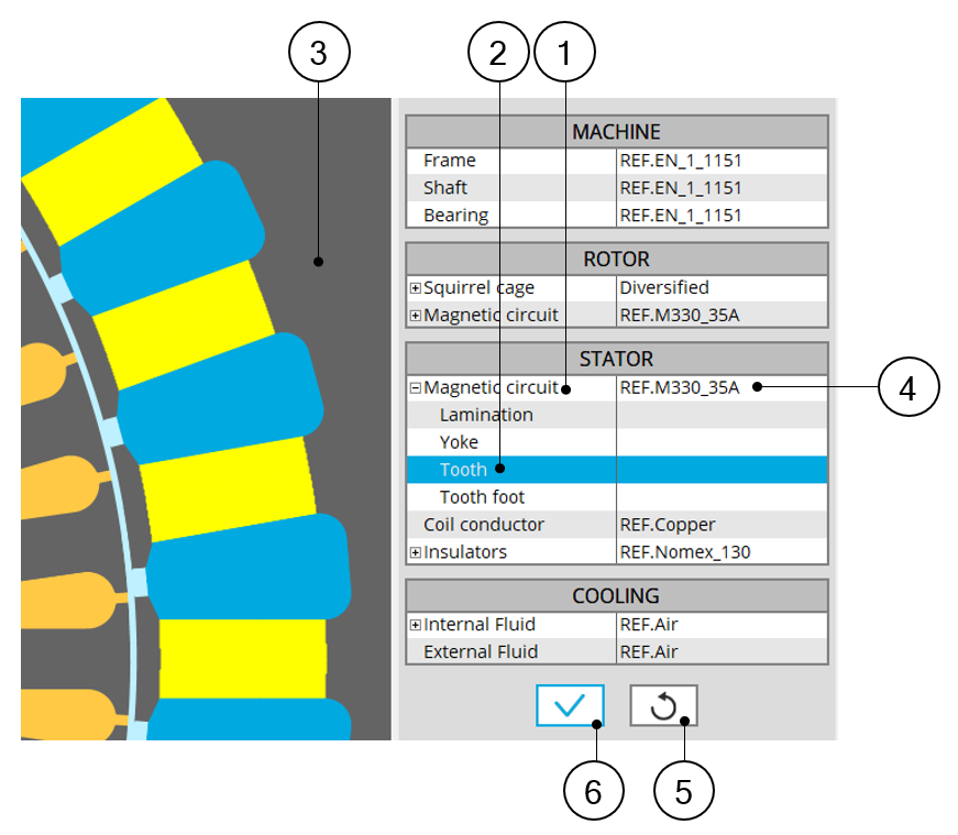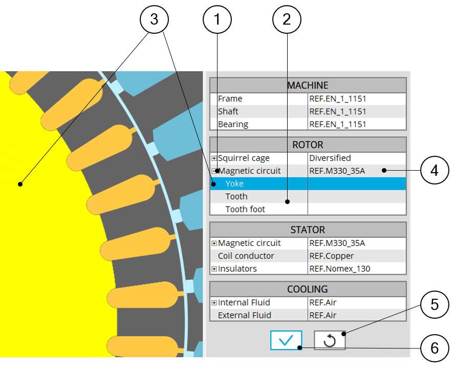 Expand the section dedicated to the magnetic circuit. Different materials (LAMINATION type or SOLID type) can be assigned to it. |