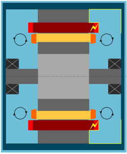 When selecting one of these four inputs, the corresponding exchange areas are highlighted in the axial view of the machine.
