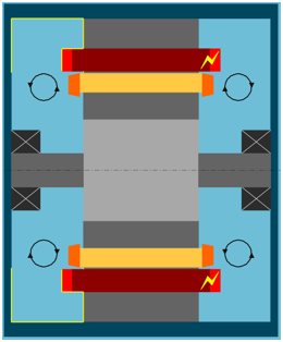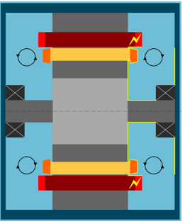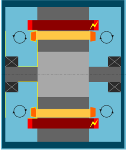 4 Axial view of the motor, where specific exchange areas can be highlighted depending of the selected input.
