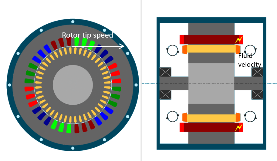 • In both input modes « Tip speed ratio » and « Constant fluid speed », the fluid speed is applied to classical correlations depending on the nature of the sub region (end winding, frame, rotor part…).