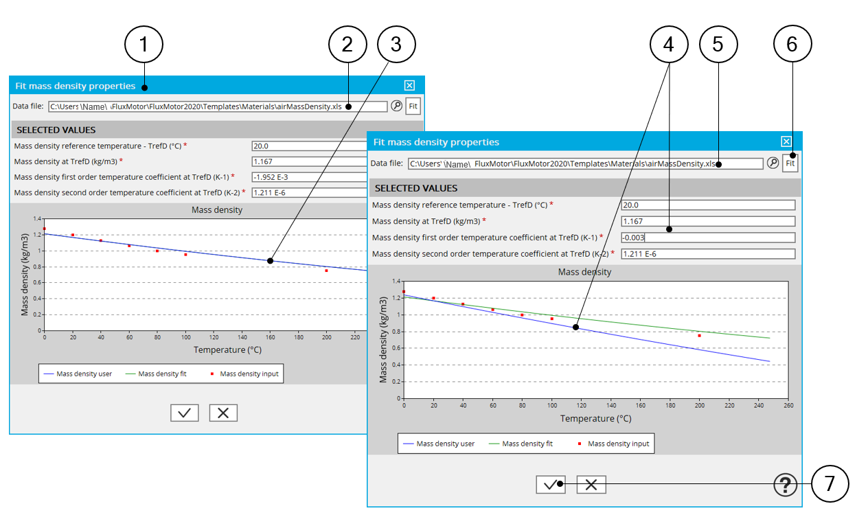 | 1 | Dialog box allowing the characterization of the density curve imported from an Excel file |