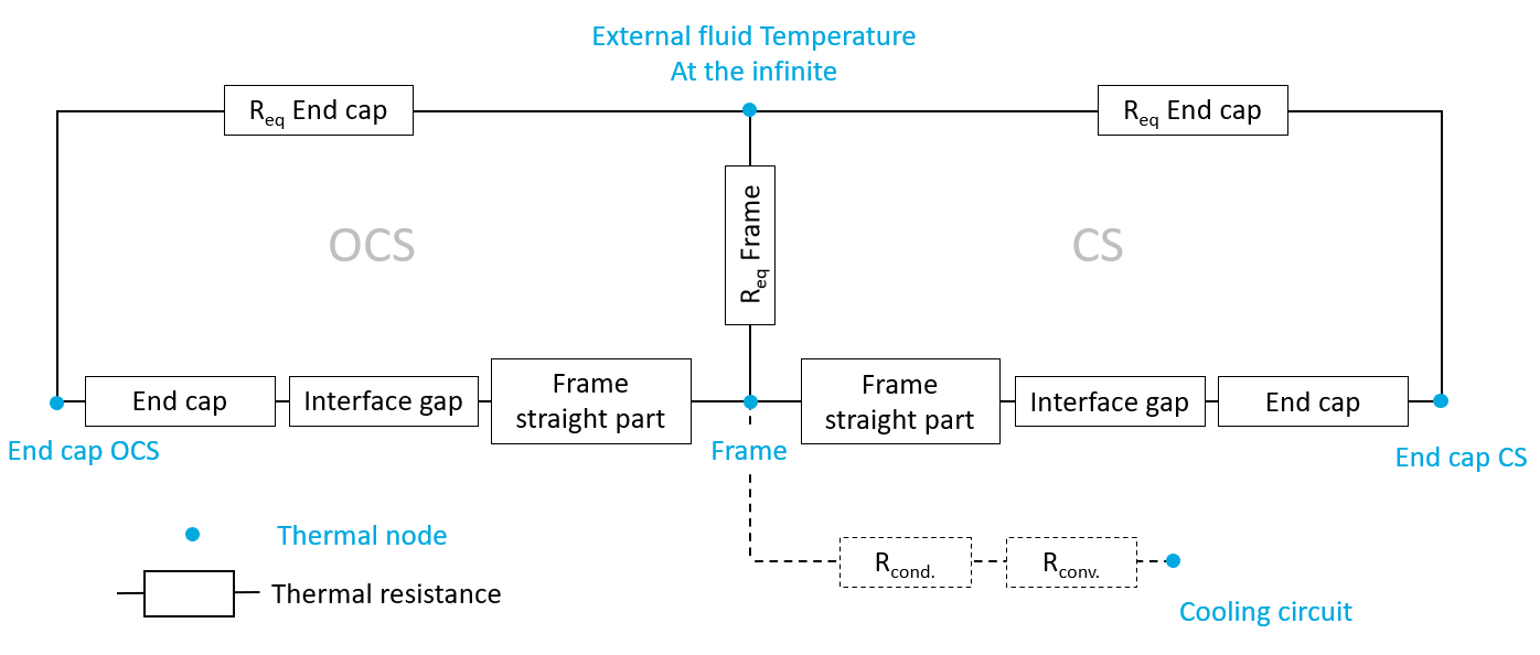 The global resistance between the frame and the external fluid - Thermal resistance network