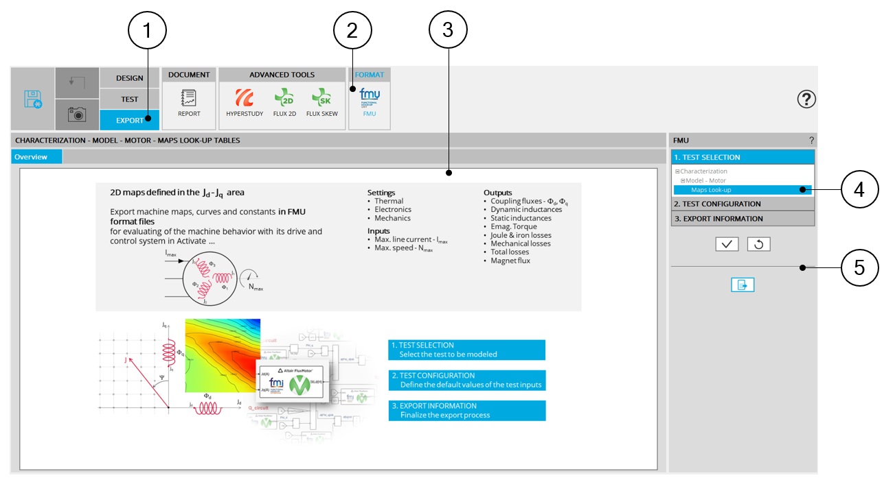 | 2 | Access the area (FORMAT) in which data can be exported in FMU format files. |