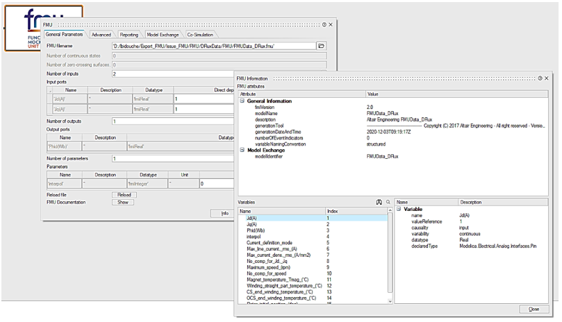 - All the information regarding the D-axis flux FMU appears along with a new content under the name parameters appears.