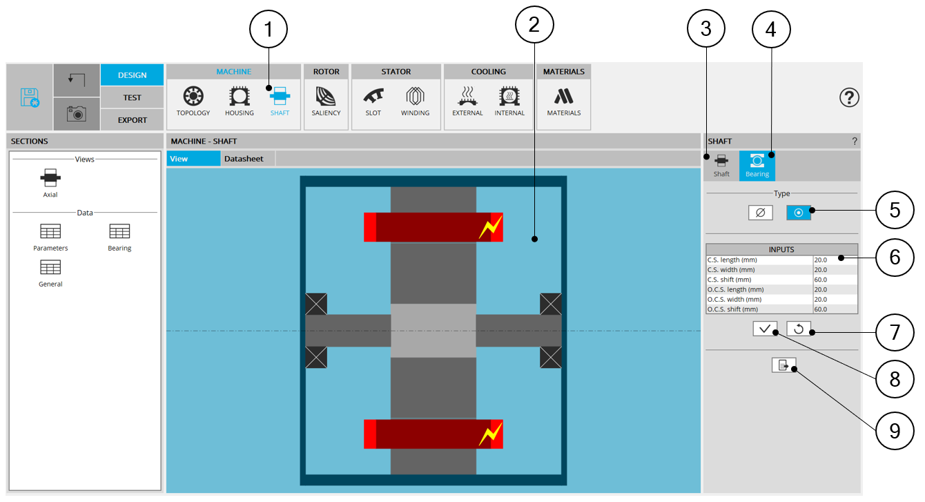 2 Visualization of the motor axial view to visualize the shaft topology with bearings