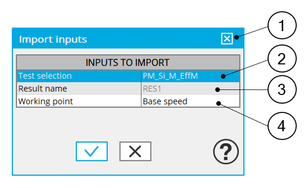The set of inputs can be imported from another test already performed in Motor Factory Test environment.