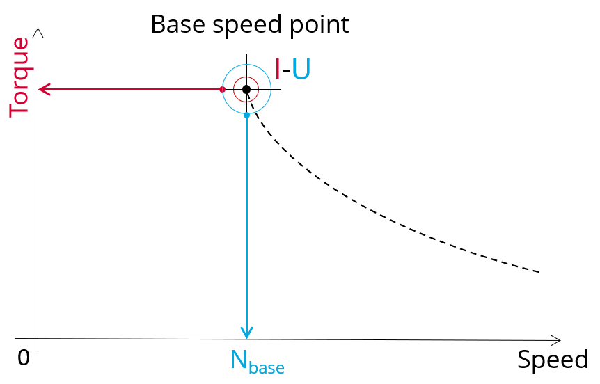 Note: In our terminology, the last working point on the constant torque part of the torque-speed curve is called “Base speed point” only when it is obtained for the maximum allowed line-line voltage and the maximum line current.