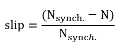 Note: The slip (s) corresponds to the difference between the speed of the rotating magnetic field in the stator (N s = Synchronous speed) and the rotor operating speed (N).