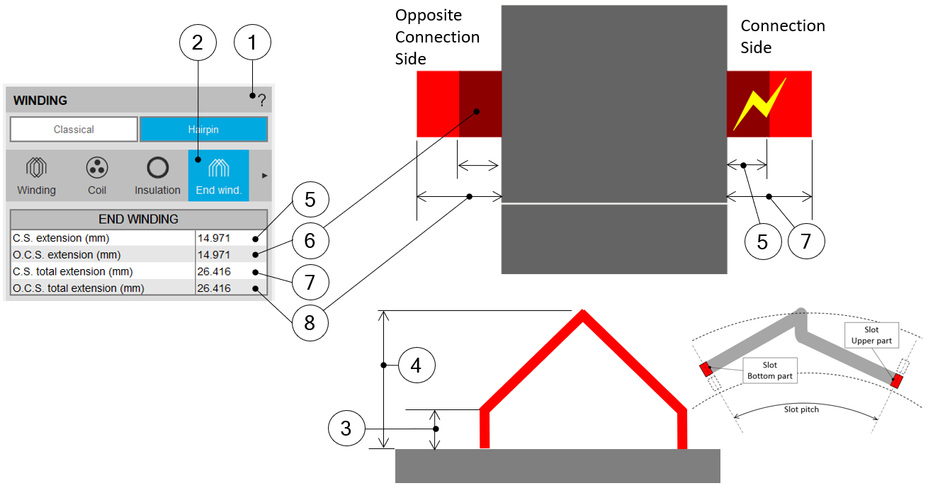 For additional information refer to the sections dedicated to the coil and conductor settings and End-winding topology