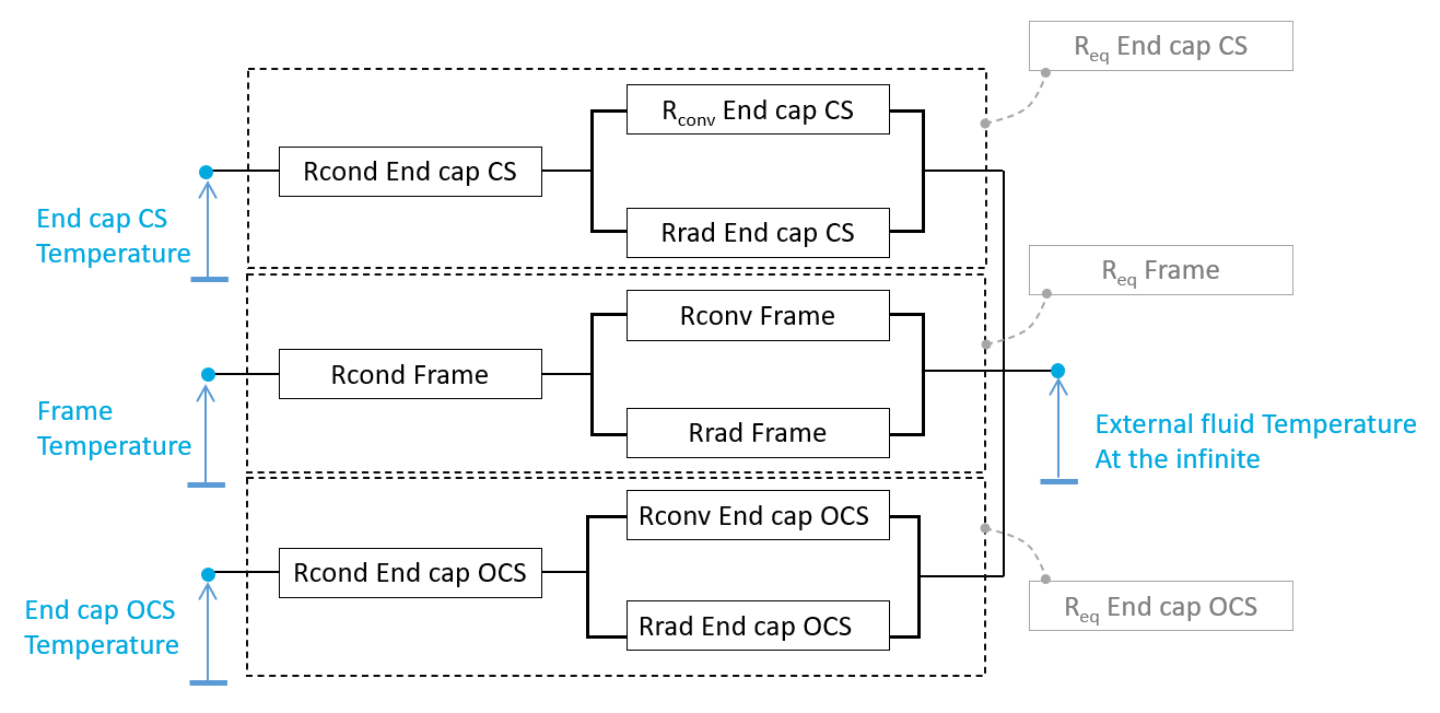 | Thermal resistance network including the interface gaps between the frame and the end caps |