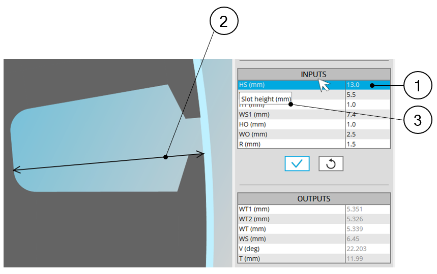 | Selecting a parameter label displays the corresponding arrow on the picture. | |