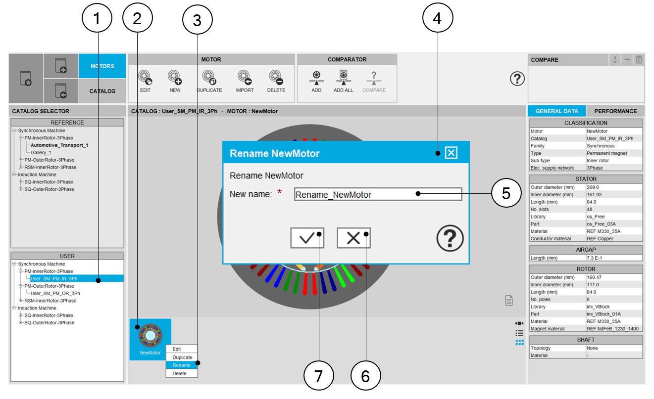 | 1 | Selection of a user’s catalog in which the motor to be renamed is stored. |