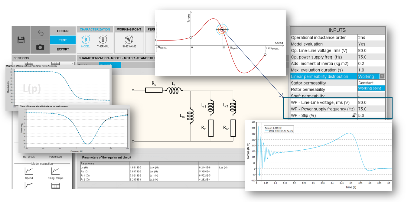 The frequency analysis to compute the operational inductance - L(p) – can be based on a working point defined with the Line-Line voltage U, the power supply frequency f and the speed N.