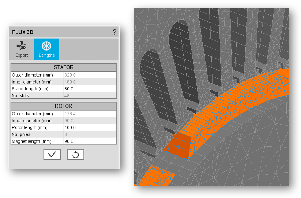 | Export project to Flux 3D environment – Stator, rotor, and magnets with different lengths |