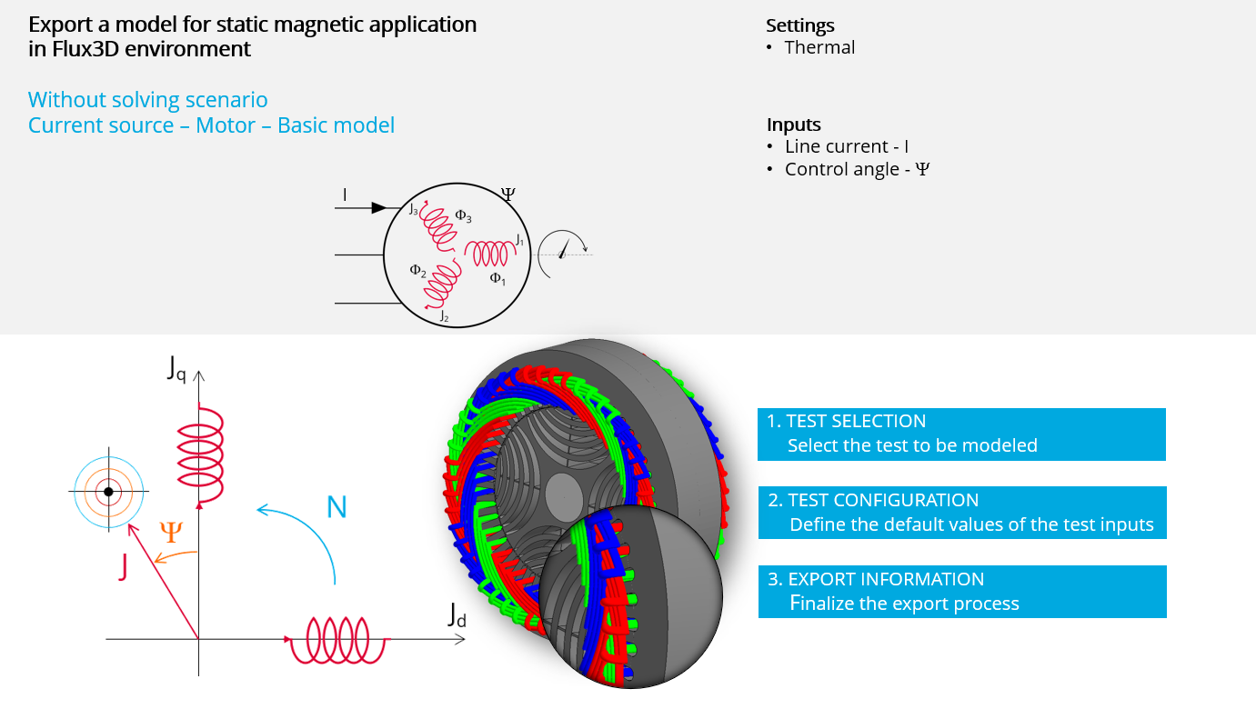 When a motor with a skewed topology is considered, on rotor side or stator side, the export to Flux 3D is not possible. In that case, only the export to Flux Skew is accessible.