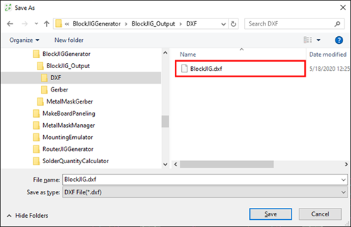 • Export DXF: The generated block JIG data is exported as DXF format data.