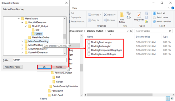 • Export Gerber: The generated block JIG data is separated for each layer and exported as Gerber format data.