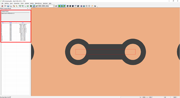 As a result of the comparison, the result window appears in PollEx PCB Modeler.