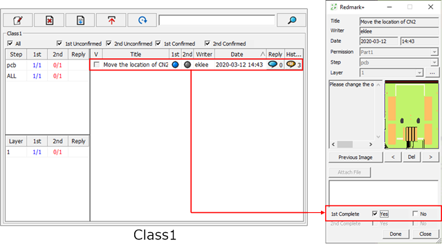User who is belong to ‘Part2’ has the 1st level permission to check and confirm the content in ‘Class1’ with ‘Yes’ (in blue) or ‘No’ (in red).