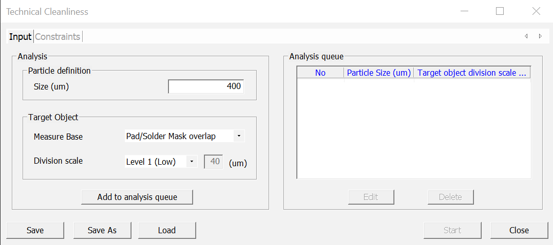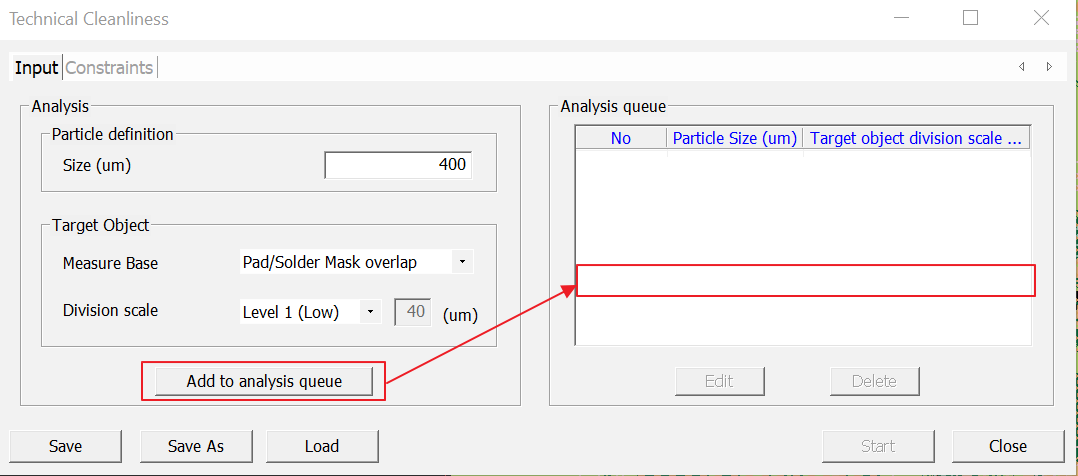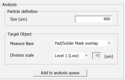 PollEx TC perform analysis using parameter from the particle definition and the target object. Once parameter is created and provided as an input, it can be added to the queue list for analysis.