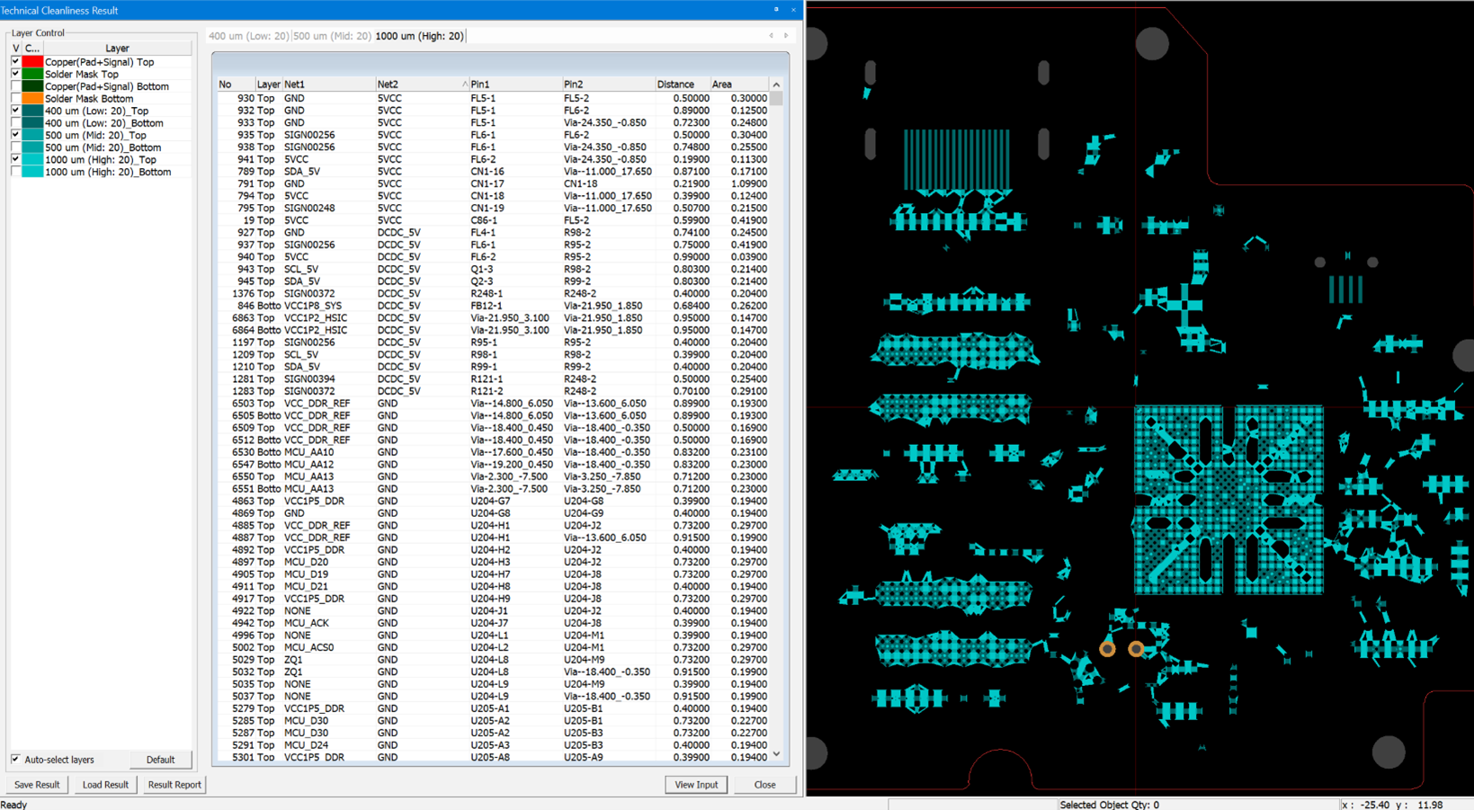 - Layer Control - This section shows the test categories and areas.