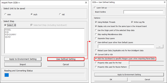 2. After importing into the ODB++ compressed file or the extracted folder, click the Add PCB sub-board to specify polygon layer when importing Panel Data.
